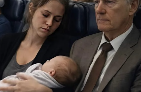 Vyčerpaná žena, sotva držíc oči otevřené, se snažila utišit své miminko, ale únava byla silnější — v jednu chvíli prostě usnula a nechtěně se opřela hlavou o rameno neznámého muže vedle sebe.