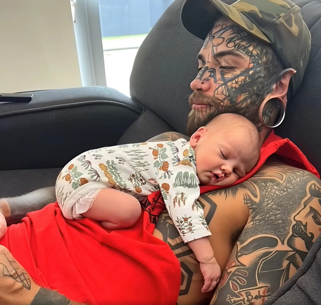 Každý kousek jeho těla pokrývaly tetování — od vlasové linie až po paty.