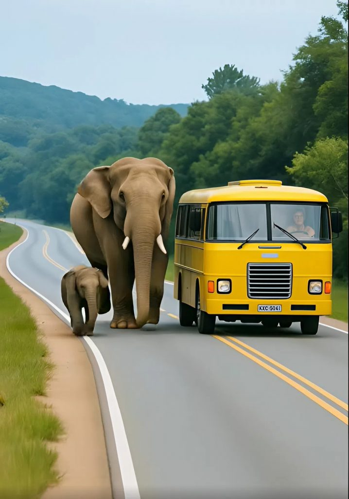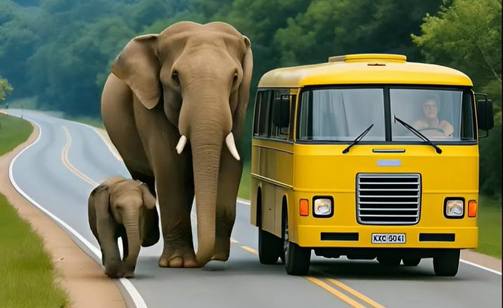 Uprostřed cesty se objevil mohutný slon. Nehnul se z místa, zcela zablokoval průjezd. Řidič okamžitě zastavil. V autobuse zavládlo napětí. Vzrušení vystřídal strach. „Co když zaútočí?“ šeptali lidé. Slon stál klidně, ale jeho tělo napjaté, uši se lehce pohybovaly — jako varování.