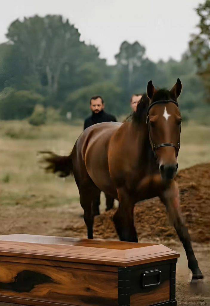 Z lesa se tiše vynořil Hrom. Bez jezdce, bez postroje. Pomalu a klidně přešel mezi lidmi až k rakvi. Sklonil hlavu a zůstal stát. Ani se nepohnul. V očích mu bylo cosi, co nikdo nedokázal pojmenovat – smutek? Porozumění?