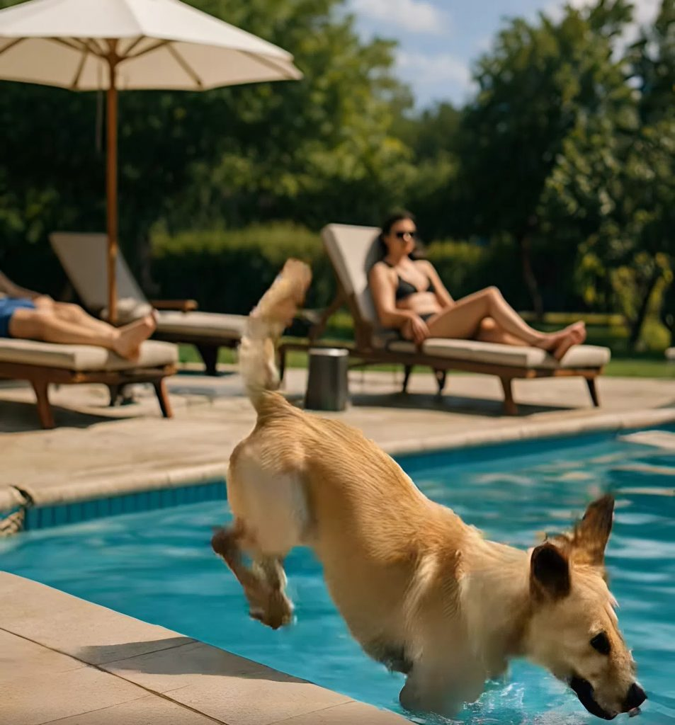 Horké letní odpoledne v tiché brněnské čtvrti. Slunce spalovalo trávníky, děti dováděly u bazénu a dospělí si užívali klidu a chladivých nápojů. Všude panovala bezstarostná letní nálada — až do chvíle, kdy do bazénu skočil pes.