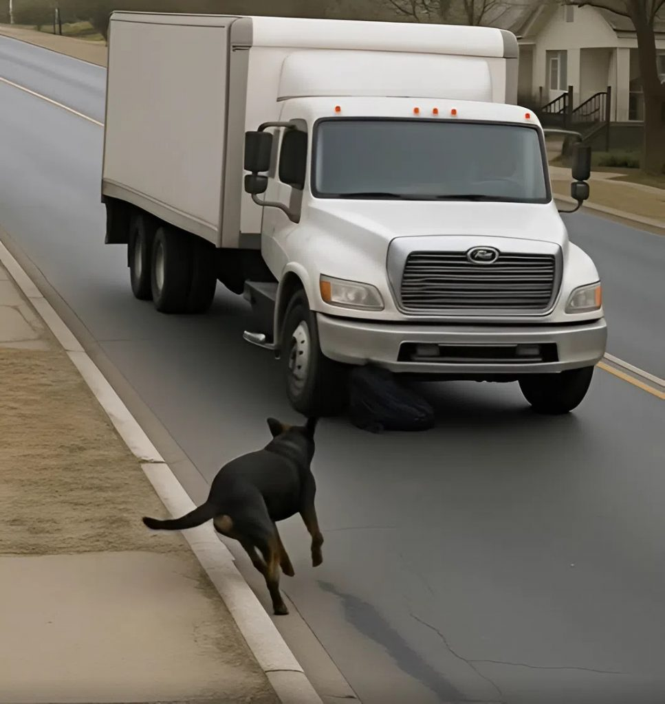Najednou zpoza zatáčky vyběhl velký pískový pes a postavil se přímo do cesty. Martin instinktivně dupl na brzdy, gumy zaskřípaly a kamion se zastavil jen pár metrů od zvířete.