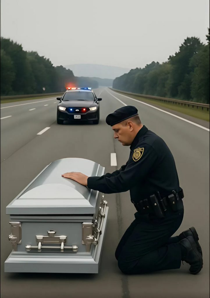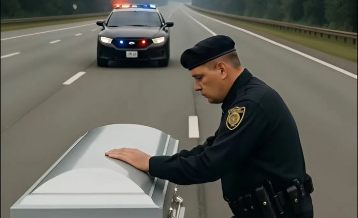 Přímo uprostřed silnice, na opuštěném úseku bez osvětlení, ležela dřevěná rakev.