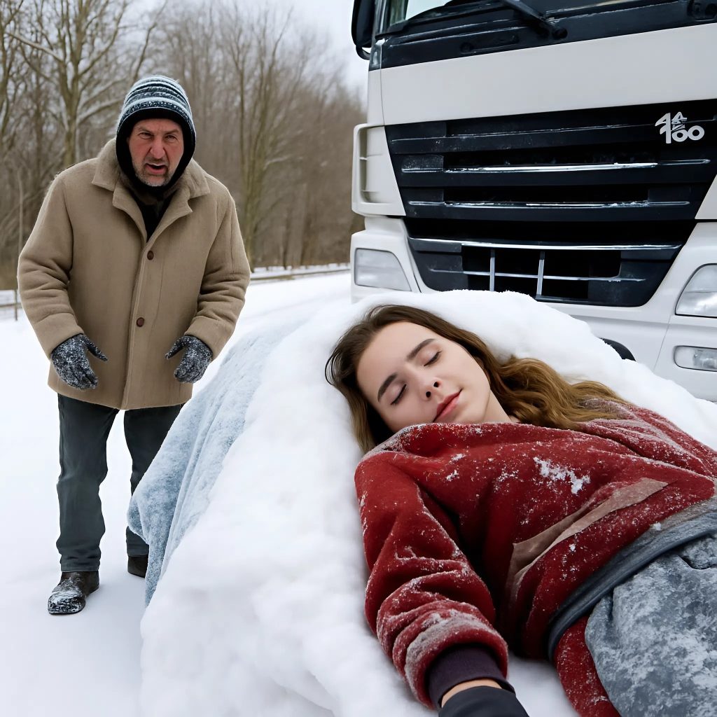 Zabrzdil kamion a vystoupil do mrazu. Tam, zavátá sněhem, ležela mladá žena. Modré rty, obličej bledý jako smrt, oblečená lehce — zcela nevhodně pro tuto zimu.