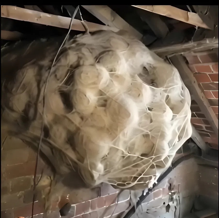 V nejvzdálenějším rohu, zavěšená z jednoho trámu, visela masivní tmavá hmota. Na první pohled to vypadalo jako obrovské hnízdo. Ale když jsem na to posvítil baterkou, cítil jsem, jak mi tuhne krev v žilách.