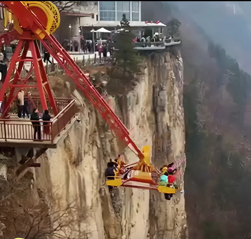 Když platforma dosáhla nejvyššího bodu, tváře turistů zářily vzrušením. Všichni čekali rychlý, ale bezpečný sestup. Místo toho mechanismus začal prudce třást. Konstrukce se řítila dolů někým až příliš rychle, jako by se lano přetrhlo.