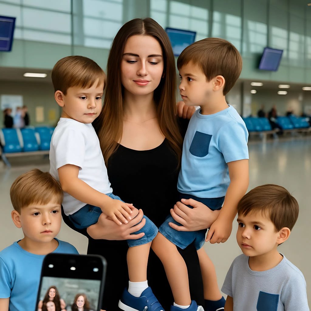 Na druhém konci haly stála žena. Nepotřebovala make-up, aby zaujala. Její výraz mluvil za vše – tichý, pevný, neústupný. Evelyn. A u jejích nohou se tiskli čtyři malí chlapci.