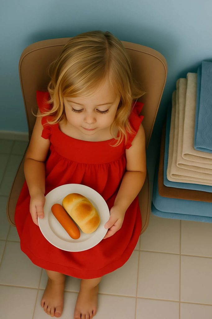 Bez dalšího vysvětlení odvedla mou dceru do prádelny a posadila ji na skládací židličku vedle hlučné sušičky. Před ní položila talířek s jedním párkem a suchým chlebem.