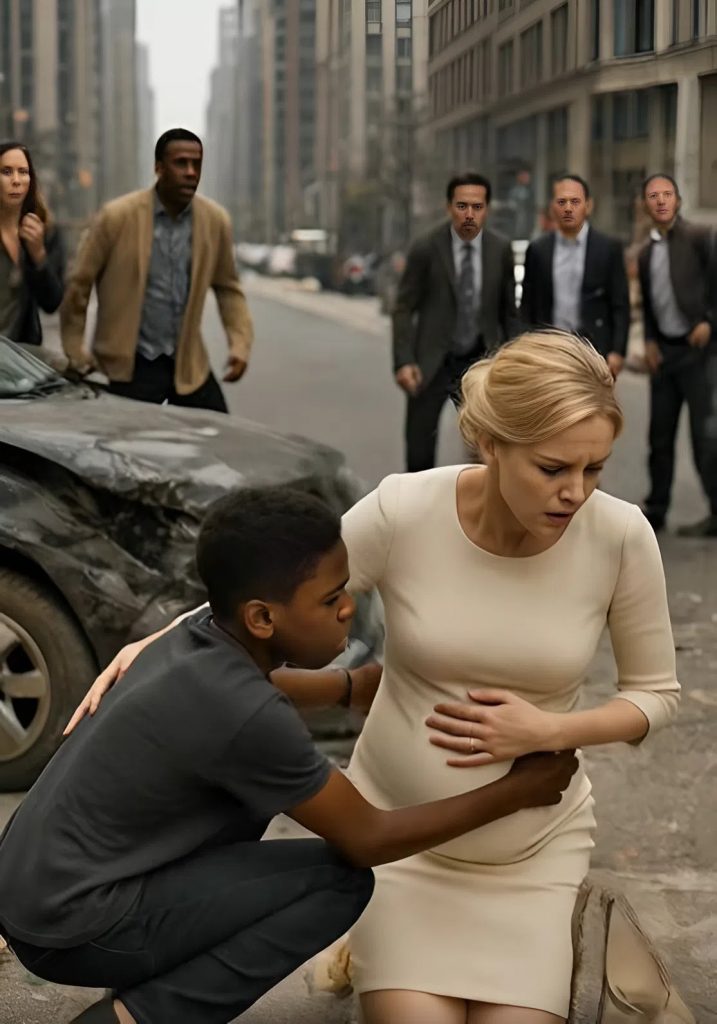 Sienna dopadla tvrdě na chodník, těžce oddychovala a instinktivně chránila své břicho. Byla naživu — jen díky němu. Ale místo vděku se kolem nich ozývaly chladné a pohrdavé hlasy.