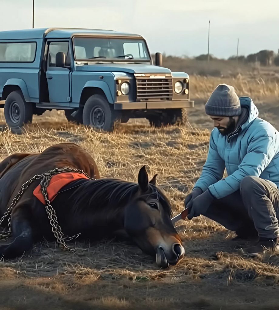 Pak přišlo první cvaknutí – řetěz povolil. A brzy i druhý. Nastalo ticho. Kůň zůstal ležet, neschopen uvěřit, že bolest je pryč.