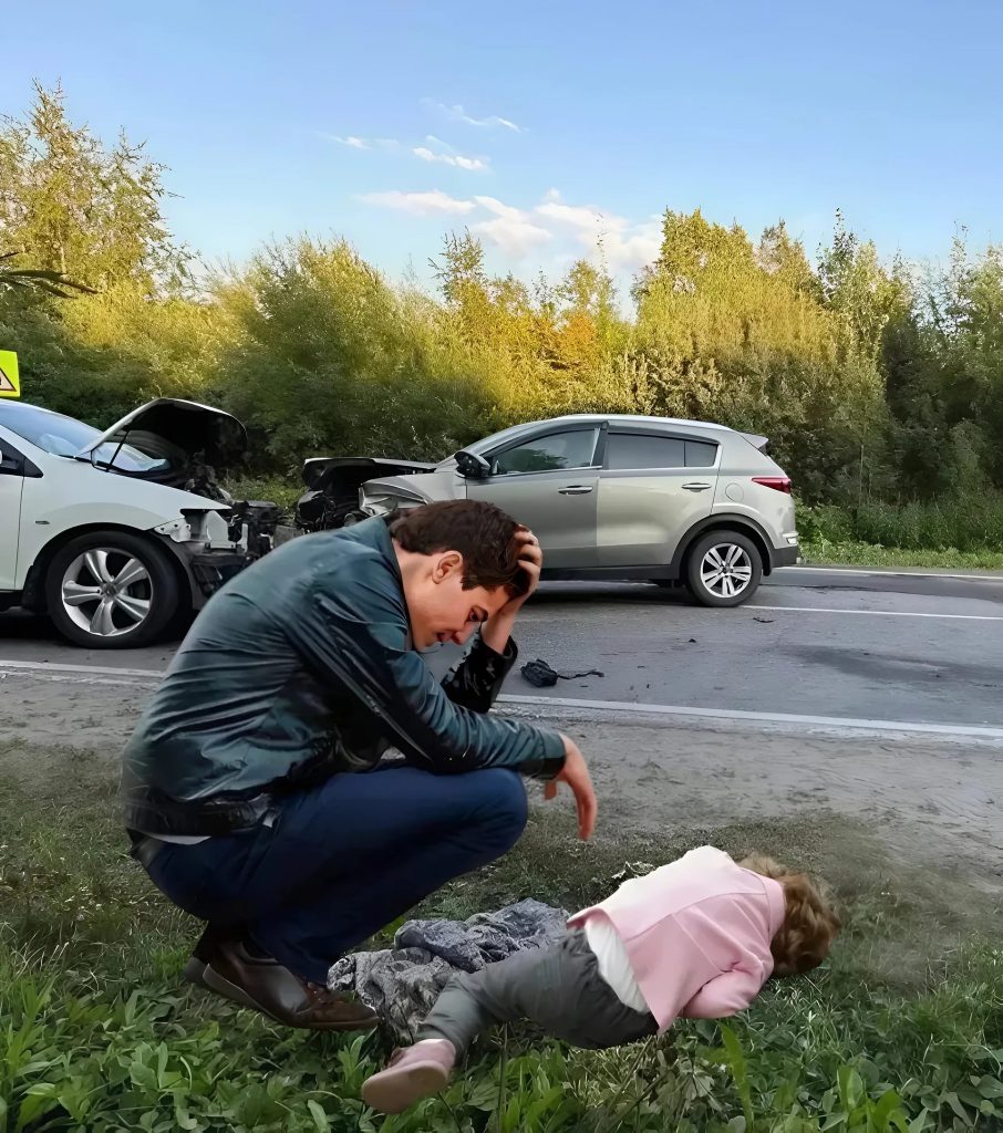 Malá dívka, možná šest nebo sedm let, vyběhla zpoza zaparkovaných vozidel přímo před jeho auto.