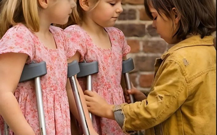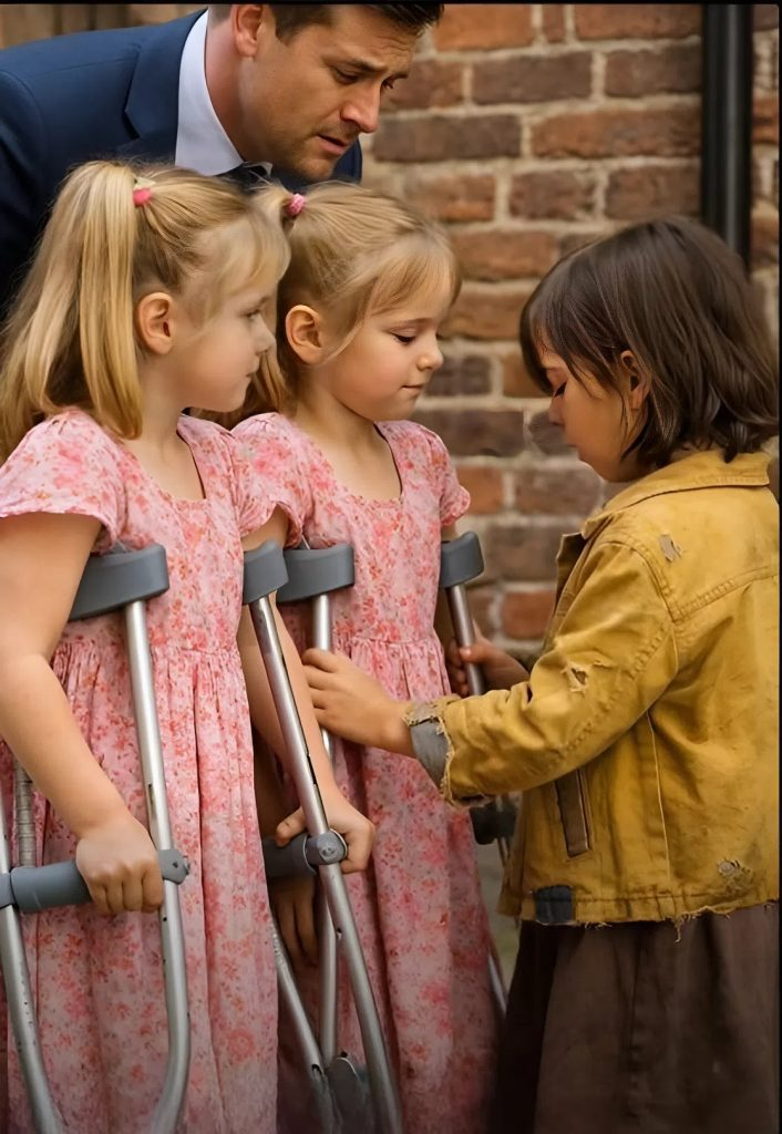 Malá dívka seděla u zdi vedle obchodu. Měla na sobě starý kabát, který byl očividně větší, než potřebovala. V rukou držela kelímek a tiše pozorovala kolemjdoucí.
