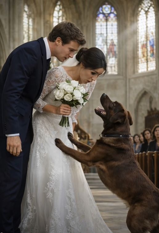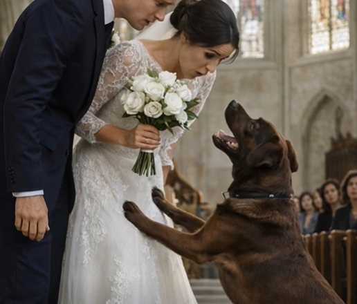Nevěsta stála bledá, ale v bezpečí. Její ruce se lehce třásly, ale když se podívala na svého psa, její výraz se změnil.