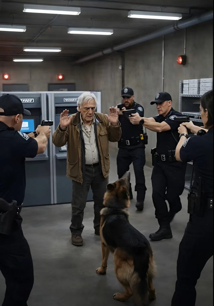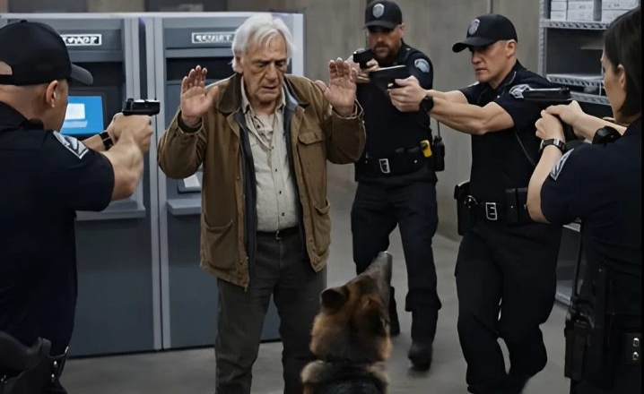 Muž ležel na zemi, dýchal rychle, oči vytřeštěné. Rex ho držel pevně, ale kontrolovaně.