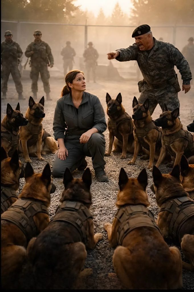 Jeden z malinois se tiše přiblížil k ženě a posadil se vedle ní, jako by ji kryl vlastním tělem. Další se postavil o krok před ni a otočil se směrem k důstojníkovi. Třetí pomalu obešel kruh a zůstal stát za ní, jako by hlídal prostor.