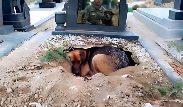 Dans un petit village tranquille, une scène a bouleversé les habitants pendant plusieurs jours. Une chienne, couchée immobile sur une tombe fraîchement creusée, semblait inconsolable. Beaucoup pensaient qu’elle était en deuil de son maître, récemment décédé. Elle refusait de quitter l’endroit, bravant la pluie, le vent, et les nuits froides. Les passants lui apportaient à manger, certains s’arrêtaient pour lui parler doucement, émus par sa loyauté apparente.