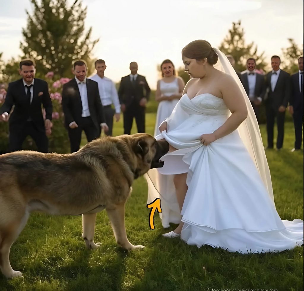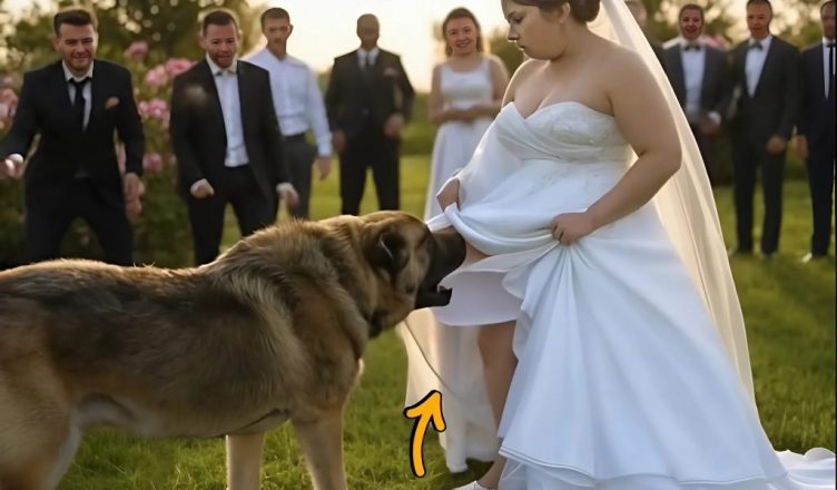 Všechno se stalo během několika vteřin. Jessie se vrhla na spodní část šatů a začala je tahat. Hosté zůstali v šoku. Někteří křičeli, jiní se snažili psa odtrhnout, mysleli si, že útočí. Ale Jessie se nevzdávala — hrabala, tahala a vrčela.